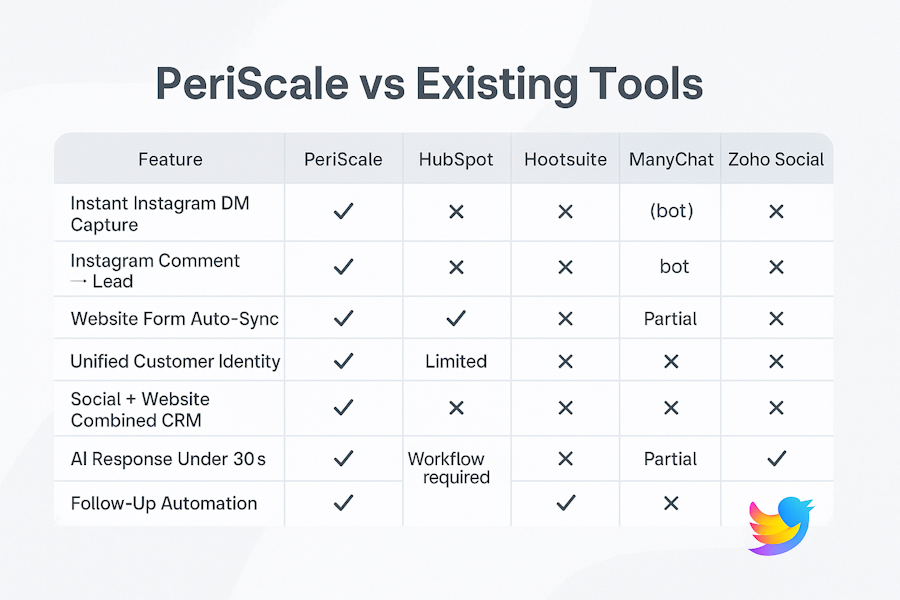 Here’s how PeriScale compares with major social, CRM, and automation tools: